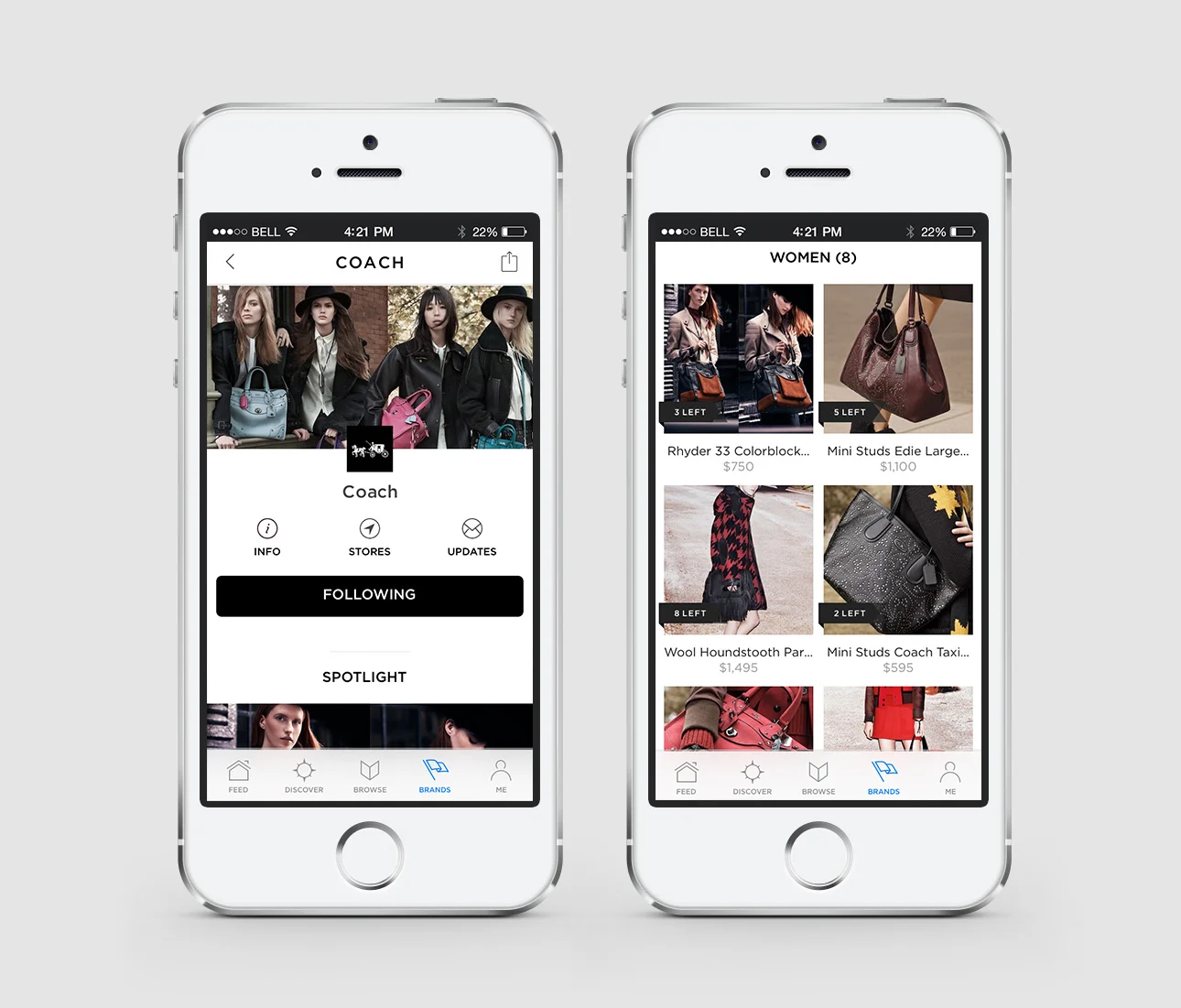 To better accommodate Facebook and Instagram posts, we used cropped in tactical imagery that was product focused, while using fashion campaign imagery for branding purposes. I also provided creative for a new app, Spring.