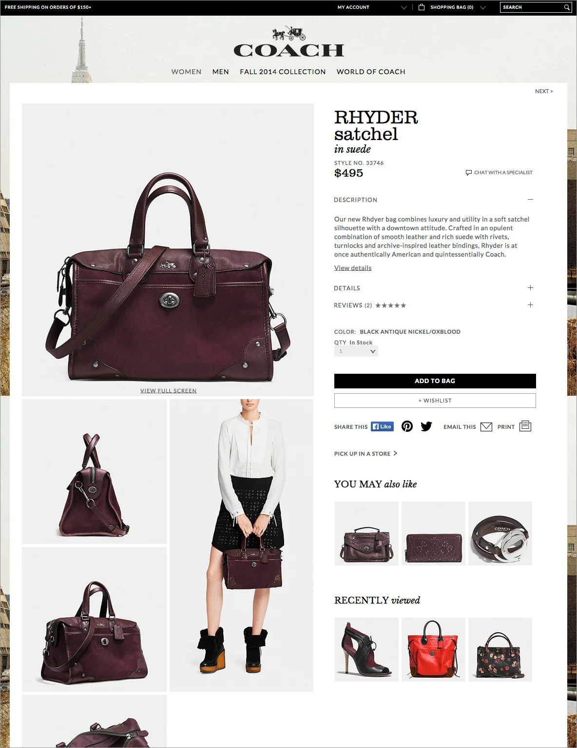 I work with the team at Sandbox on a monthly basis to update our on-figure photography for Coach.com.